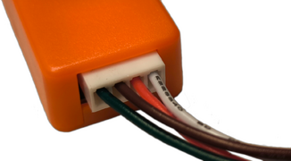 Das Gehäuse vom Resler Interface ist Schwarz, das Gehäuse vom Resler Modul ist Orange.